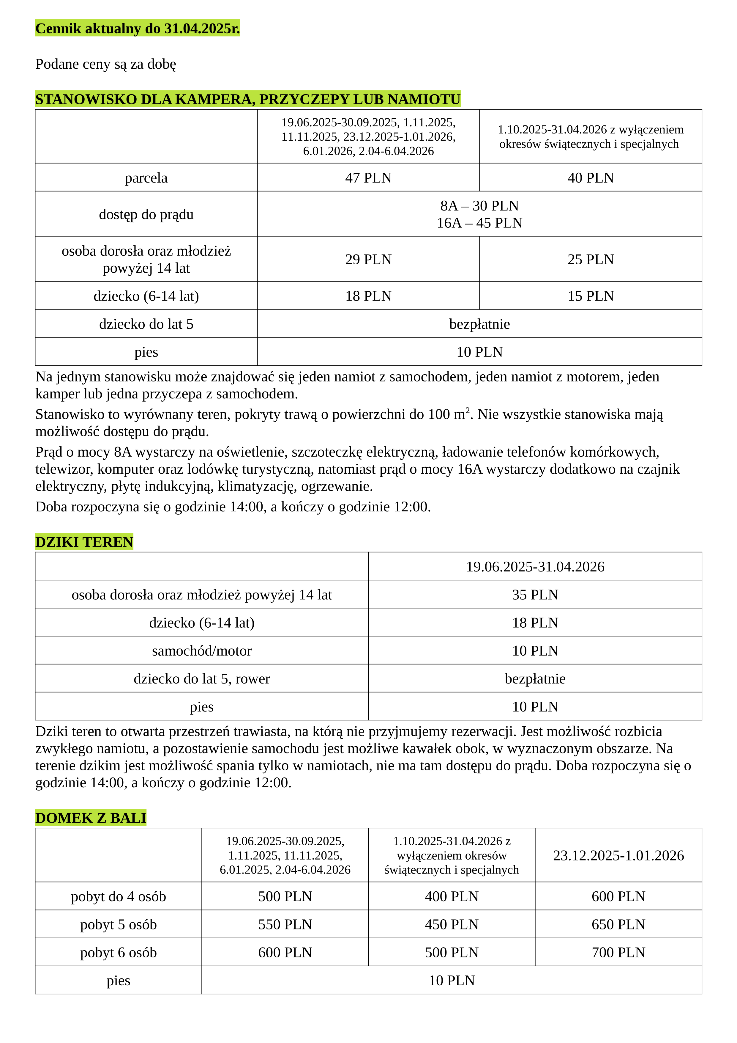 • Cennik